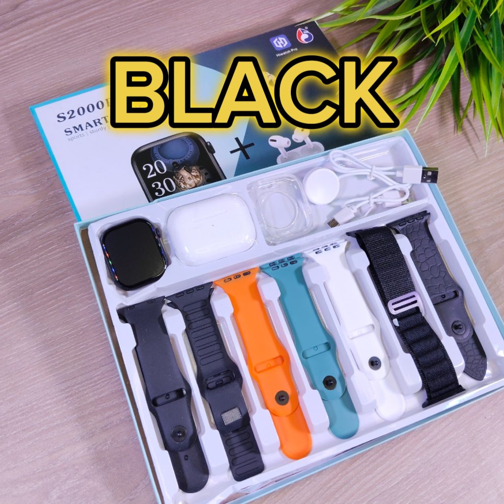 (Black) S2000 Pro Max Smart Watch With Airpods – (বক্সে থাকবে ১টি ঘড়ি, ১টি এয়ারপডস, ৭টি বেল্ট, এবং ১টি ফ্রী ওয়াচ কভার) 🤩 সীমিত সময়ের জন্য অফার